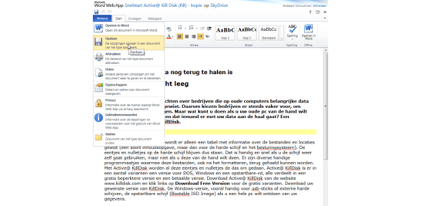 Online biedt diverse voordelen, maar er bestaat altijd het risico dat de dienst wordt opgeschort. Maak dus regelmatig een lokale kopie van uw documenten.