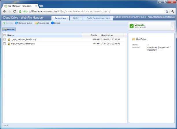 Via de webinterface ziet u alle bestanden in de Cloud Drive. Bovendien worden nieuwe versies automatisch bijgehouden, zodat u eenvoudig een oude versie kunt downloaden.