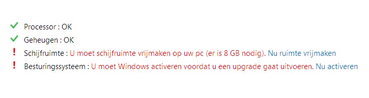 De tool controleert eerst of je computer wel in aanmerking komt voor de upgrade. De volgende parameters zijn daarbij van belang:
