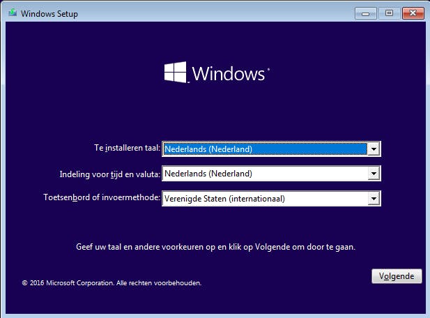 Na het booten verschijnt na enkele seconden het eerste installatiescherm.