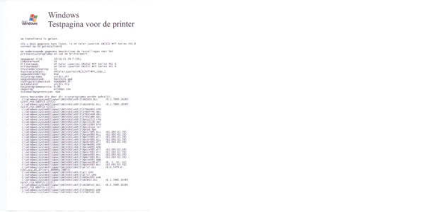 Een testpagina geeft veel informatie over de hard- en software van de printer.