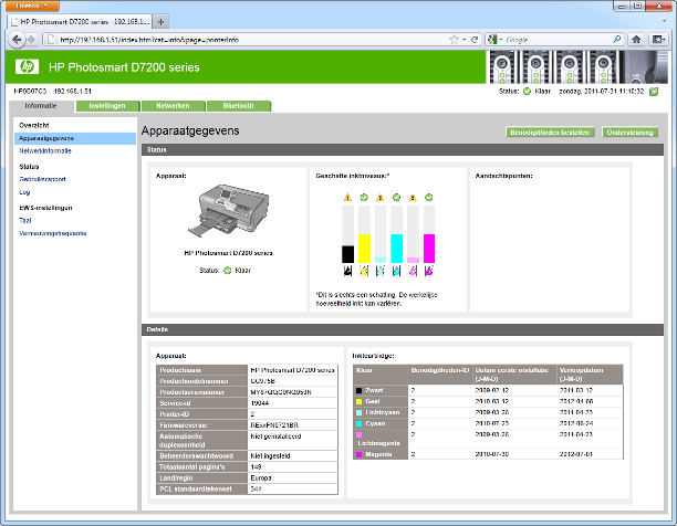 Veel printers zijn uitgerust met een eigen webserver waarop u informatie over de printer, de configuratie en het gebruik kunt vinden.