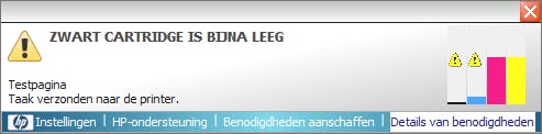 De meeste printers geven het zelf aan als de inkt of toner op begint te raken.