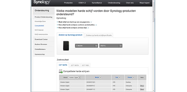 Uiteraard past iedere 3,5inch-schijf in iedere NAS, maar het is toch niet zo'n goed idee om zomaar een schijf te kopen en die in een NAS in te bouwen. Gelukkig testen de meeste NAS-fabrikanten voortdurend nieuwe harde schijven in combinatie met hun NAS-behuizingen en hebben ze daarom lijsten beschikbaar met welke schijven gegarandeerd werken. We hebben voor de bekendste NAS-fabrikanten de lijsten voor je opgezocht, uiteraard bieden ook andere fabrikanten dergelijke lijsten aan.