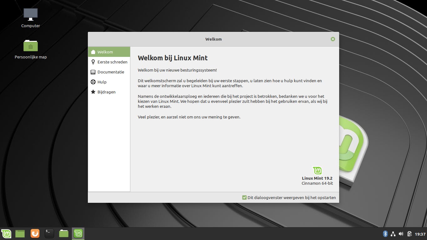 Haal nu gerust even koffie, want het duurt even voordat Linux Mint alle systeembestanden heeft weggeschreven. Na afloop kun je definitief met dit fraaie besturingssysteem aan de slag. Verwijder de opstartbare usb-stick uit de computer en voer een herstart uit. Linux Mint start nu op en is klaar voor gebruik. Veel plezier met je nieuwe besturingssysteem!
