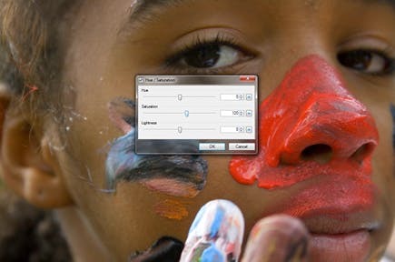 Een oude indianentruc om uw foto's nog pakkender te maken is het opdrijven van de kleurverzadiging. Ga naar Adjustments / Hue/Saturation. In dit regelvenster ziet u drie regelaars staan: Hue (kleurtoon), Saturation (verzadiging) en Lightness (lichtsterkte). Klik op het middelste schuifje en beweeg dit naar rechts. Alle kleuren worden dieper en levendiger door deze ingreep. Met de schuifjes Hue en Lightness hoeft u in principe niets te doen. Tenzij u het beeld expliciet een kleurzweem wilt geven, dan kunt u met Hue de gepaste tint zoeken.
