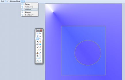 Paint.NET beschikt over vier selectiegereedschappen: Rectangle Select om rechthoeken te selecteren, Lasso Select om handmatig met de lasso te selecteren, Elipse Select om ovale selecties te maken en Magic Wand (toverstafje) waarmee u op basis van kleurovereenkomst selecteert. Om selecties bij elkaar op te tellen selecteert u eerst een gebied, drukt u de Shift-toets in en selecteert dan een tweede gebied. Het resultaat is de samengestelde selectie van de eerste en tweede selectie. Om selecties van elkaar af te trekken drukt u op de Alt-toets in plaats van op de Shift-toets.