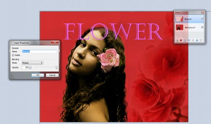 Helemaal rechtsonder in het palet Layers staat de knop Layer Properties. Daarmee laat u de laageigenschappen van de actieve laag verschijnen. In de laageigenschappen staat of de laag zichtbaar is en onderaan leest u de dekkingsgraad. De waarde 255 komt overeen met volledige dekking, de waarde 0 betekent volledige transparantie. Heel interessant is de Blending Mode (overvloeimodus). Hiermee geeft u aan op welke manier deze laag zich moet mengen met de onderliggende laag. In dit voorbeeld hebben we de bovenste laag in de modus Multiply gezet.