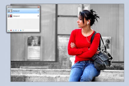 Nu u weet hoe u moet omgaan met lagen en hoe u zwart-witafbeeldingen moet maken, is het niet moeilijk om zwart-wit en kleur te combineren. Vertrek van een opname in kleur en dupliceer de achtergrondlaag. Vervolgens zet u de bovenste laag om in zwart-wit. Daarna gebruikt u het gummetje om het object in de bovenste (zwart-wit) laag weg te gummen. Op die manier komt het gekleurde object uit de laag daaronder tevoorschijn. Daarna voegt u de lagen samen. Klaar!