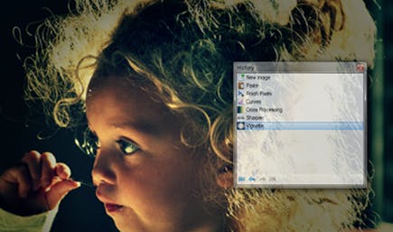 Ten slotte: iedere bewerking die u uitvoert, wordt vastgelegd in het palet History. Hierdoor kunt u steeds teruggaan naar een vorige stap. Omdat zo'n lijst handelingen erg lang kan worden, staan er onderaan dit palet vier knoppen: om terug te gaan naar de allereerste handeling, om de laatste handeling te herstellen, om de laatste herstelde handeling opnieuw te herhalen en om snel naar de allerlaatste handeling te schakelen.
