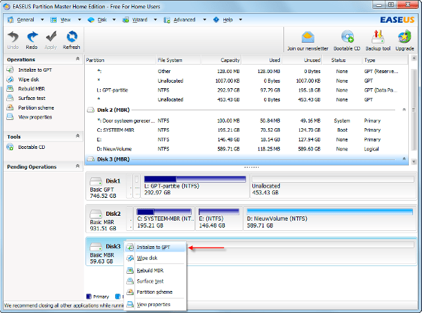 Een conversie van MBR naar GPT of omgekeerd: zó gebeurd (ook in EaseUS Partition Master).