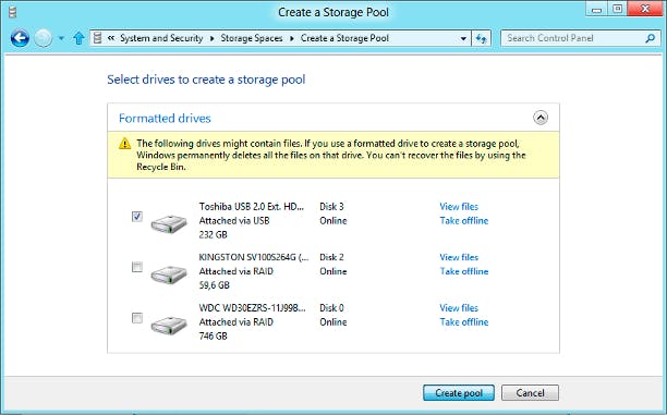 "Storage Spaces in Windows 8 Consumer Preview: geen dataverlies meer bij schijffouten."
