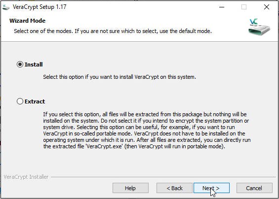 Het is ook mogelijk om zelf opslagschijven en sticks versleutelen. Je hebt dan geen aparte hardware nodig, maar wel encryptiesoftware. En die is er gelukkig voldoende en vaak nog gratis ook. De bekendste tool is misschien wel VeraCrypt, een opvolger van TrueCrypt dat op zijn beurt weer jarenlang de standaard was. Met VeraCrypt kun je elk opslagmedium versleutelen: van usb-geheugenstick tot een externe harde schijf, maar ook een schijf of een partitie in een pc, zelfs die waar het besturingssysteem op staat. VeraCrypt wordt gemaakt door het Franse beveiligingsbedrijf Idrix en is gratis te downloaden via veracrypt.codeplex.com. Klik op Download en bewaar het installatiebestand op de pc. Bij de installatie kun je kiezen tussen Install en Extract. Met Extract pak je alleen de bestanden uit op de harde schijf en kun je vervolgens alleen niet-systeemschijven versleutelen. Wil je alles versleutelen, dus ook de systeempartitie, dan kies je Install.