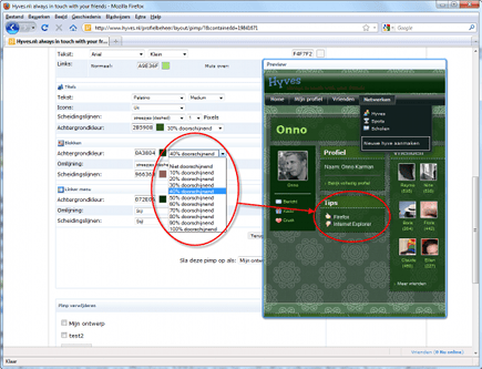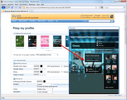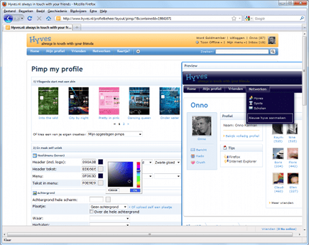 In Hyves kunt u uw profielpagina gedetailleerd aanpassen.