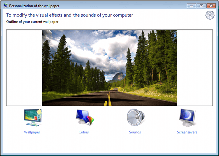 Na installatie vindt u het programma niet terug in het startmenu. In plaats daarvan probeert StarterBackgroundChanger de extra functionaliteit van de uitgebreidere Windows 7-versies zo goed mogelijk na te bootsen. Om toegang te krijgen tot het programma klikt u daarom met rechts op uw bureaublad en kiest u Personalize. Er opent nu een venster dat doet denken aan een simpelere uitvoering van het venster Persoonlijke instellingen uit uitgebreidere Windows 7-versies. De bureaubladachtergrond wijzigt u in het menu onder de knop Wallpaper, maar ook de overige drie knoppen zijn handig. De knop die wij hiervan het meest waarderen is Colors, waarmee u toegang krijgt tot het wijzigen van de thema’s en de gebruikte kleurinstellingen. Deze instelling is bij Windows 7 Starter verstopt in het configuratiescherm, dus het is prettig dat we er weer op een intuïtieve manier bij kunnen. Met Sounds verandert u het geluidschema van Windows en Screensavers biedt u toegang tot de instellingen voor de schermbeveiliging.