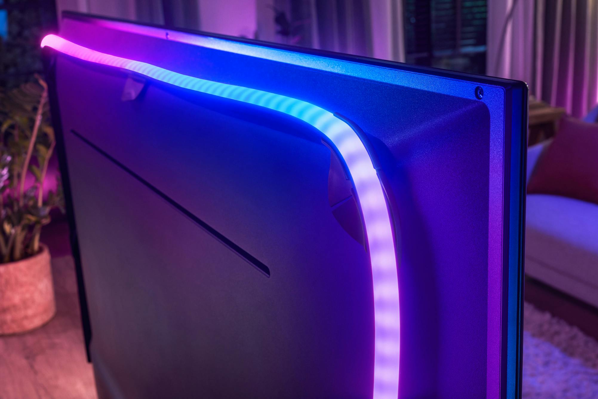 Philips staat niet alleen dankzij Hue bekend om kleurige verlichting, veel duurdere Philips-televisies hebben met Ambilight veelkleurige verlichting die gebruikt wordt om je kamer te verlichten op basis van de content om zo de kijkervaring intenser te maken. Bij sommige modellen kun je vervolgens weer Hue-lampen koppelen om het nog intenser te maken. Met de Philips Play Gradient Lightstrip kun je nu iedere televisie voorzien van ‘Ambilight’.