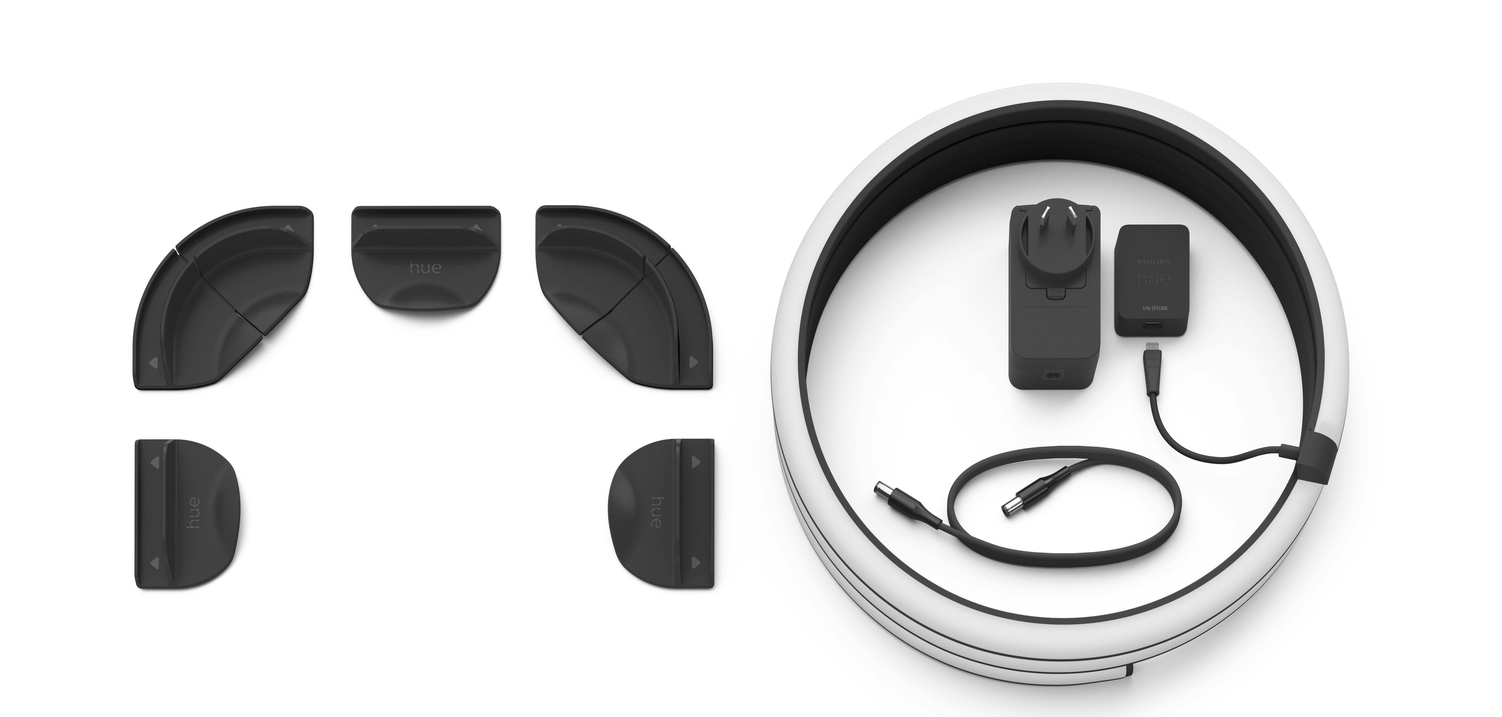 Deze lightstrip bestaat uit drie delen en plak je aan de achterkant van je televisie aan de bovenkant en beide zijkanten. Hoewel de leds op de lightstrip technisch individueel kunnen worden aangestuurd, vertelde Signify dat het systeem in zeven zones is verdeeld: drie bovenop en twee aan iedere zijkant. Dat zou volgens Signify genoeg variatie moeten bieden om goed bij alle content aan te sluiten. Naast de lightstrip kun je nog maximaal negen andere Hue-lampen koppelen voor een nog intenser effect.