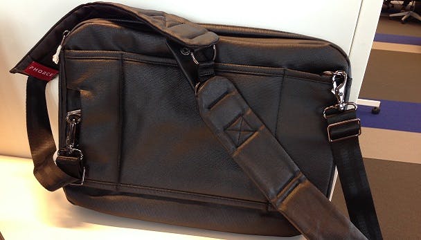 De Phorce Freedom ziet er van de buitenkant uit als een doodgewone tas. Daar is een logische verklaring voor: het ís een doodgewone tas. Onder de waterdichte buitenkant is voldoende ruimte voor een 13 inch-laptop, een tablet, eventueel een smartphone en wat tijdschriften of formulieren. Het enige wat opvalt is het kleine compartiment voor de accu, verstopt in het hoofdvak van de tas.