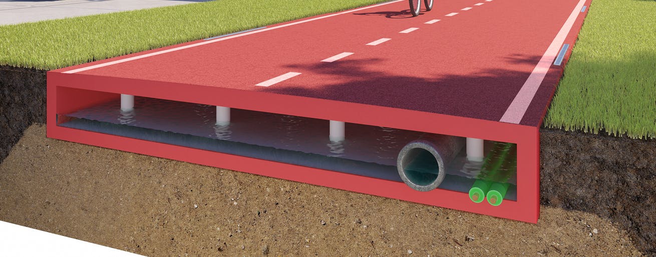 Water opvangen is niet de enige functie van de ruimte onder de weg. De makers willen die ook gebruiken om kabels en leidingen in te kunnen leggen. Ook daar is in de toekomst steeds meer vraag naar. Eigenlijk, zegt Koudstaal, kan de ruimte voor alles worden gebruikt. “Sensoren, of units voor inductiedraden. Alles wat een gewone wegconstructie niet heeft, kan er bij de Plastic Road wel in. Je zou er zelfs servers in kunnen plaatsen, die dan in de winter de wegen verwarmen.”