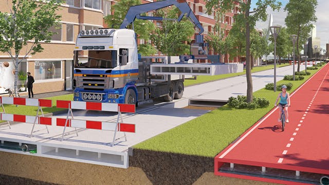 De pragmatisch genaamde ‘Plastic Road’ is een initiatief van KWS, een Koninklijke VolkerWessels-onderneming. Het concept is simpel: oud plastic wordt verwerkt tot grote prefab-platen van kunststof, die vervolgens aan elkaar worden vastgemaakt tot ze een weg vormen. Sinds enige tijd ligt er een experimenteel stukje fietspad in Overijssel waar het concept wordt getest.