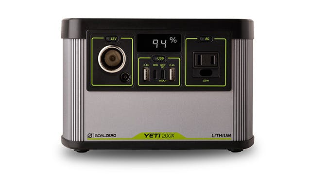 Tot dusver ontwikkelde Goal Zero voor de consumentenmarkt nogal forse generatoren die stevig aan de prijs waren. Afgelopen februari kwam het Amerikaanse merk eindelijk met een betaalbaar model op de proppen. De Yeti 200X kost weliswaar zog altijd zo’n driehonderd euro, maar daar krijg je wel een generator met een batterijcapaciteit van 187 Wh voor terug. Volgens de fabrikant is deze omvangrijke ‘powerbank’ krachtig genoeg om viermaal een laptop volledig op te laden.