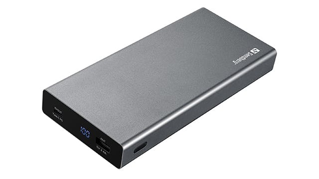Zoek je een powerbank met een sterke behuizing, dan is deze nieuwe telg van Sandberg wellicht iets voor jou. Het omhulsel bestaat namelijk uit aluminium en kan dus wel een stootje hebben. De usb-c-output is met een maximaal laadvermogen van 88 watt krachtig genoeg om geschikte laptops vlot op te laden. Voor het bijladen van deze powerbank staat dezelfde usb-c-poort paraat, al ligt het vermogen met 60 watt in dat geval wel iets lager. Sandberg levert een tamelijk korte usb-c-kabel van een halve meter mee.