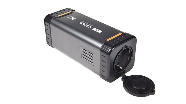 Het hoekige uiterlijk van deze Xtorm Brick wijkt af van wat we normaal van powerbanks gewend zijn. Niet vreemd, want dit exemplaar bevat aan de zijkant een stopcontact. Toch kun je niet lukraak ieder elektrisch apparaat aansluiten, want het nominale vermogen van deze aansluiting bedraagt slechts 80 watt. Het opladen van een laptop, drone of camera leidt volgens de fabrikant in elk geval niet tot problemen. Nuttig is dat je voor de besparing van energie de stroomtoevoer naar het stopcontact tijdelijk kunt stopzetten.