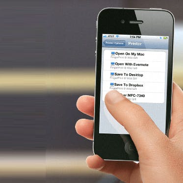 Nu je alles hebt ingesteld op je pc of Mac, is het tijd om ook daadwerkelijk iets af te drukken. Met de manier waarop dit soort zaken doorgaans op apparaten van Apple werken, zou je wellicht verwachten dat je nu een FingerPrint app moet installeren op het iOS-apparaat, maar dat is gelukkig helemaal niet nodig. De printfunctie zit al in iOS (4.2 en hoger) ingebakken en de rest wordt afgehandeld door de computer.