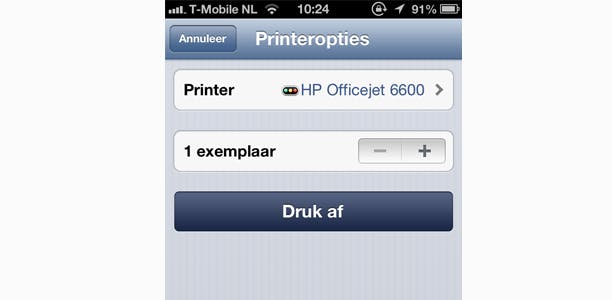 Printen is vervolgens letterlijk een kwestie van op de knop drukken op je iOS-apparaat (mits de pc of Mac aanstaat uiteraard).