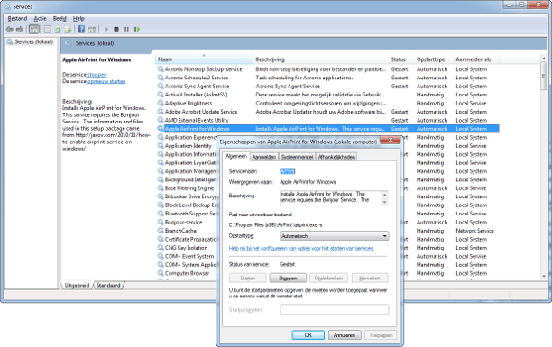 Om de installatie van de AirPrint-service onder Windows succesvol te laten zijn, moet de service op sommige pc's handmatig worden gestart. Dit was niet altijd nodig.
