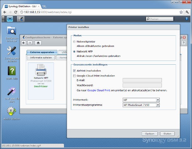 Het toevoegen van AirPrint gebeurt helemaal op de NAS.