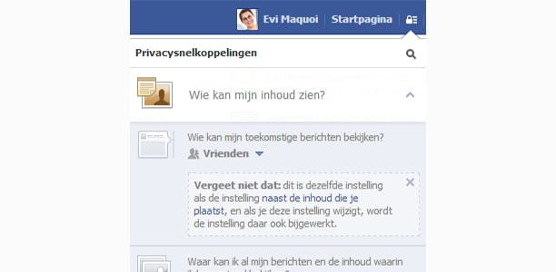 Door een goede standaardinstelling te kiezen, hoef je niet bij elke statusupdate in te stellen wie wat kan zien.