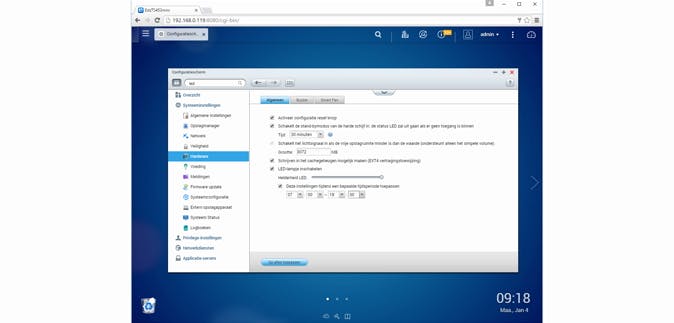 De LED's op de voorzijde van de NAS kunnen via de software gedimd worden.