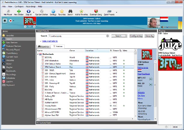Via de zoekfunctie van RadioMaximus kunt u radiostations opsporen op naam, per land of op muziekgenre. Het aantal zenders is ontzettend groot en erg gevarieerd. Van lokale stations tot openbare omroepen, niets ontbreekt. U kunt onmiddellijk naar een zender luisteren en deze eventueel aan uw favorieten toevoegen. Via het rechtermuisknopmenu is het mogelijk om extra informatie op te vragen zoals de website van de radiozender, de bitrate, het streamtype enzovoorts. Handig is dat u via het tabblad Music ook rechtstreeks nummers van uw favoriete artiesten kunt opsporen en streamen. RadioMaximus schotelt bovendien gelijkaardige artiesten voor. Afspeellijsten maken met de zoekresultaten? Ook dat kan. Indien u over een Last.fm-account beschikt kunt u ook naar Last.fm-zenders luisteren.