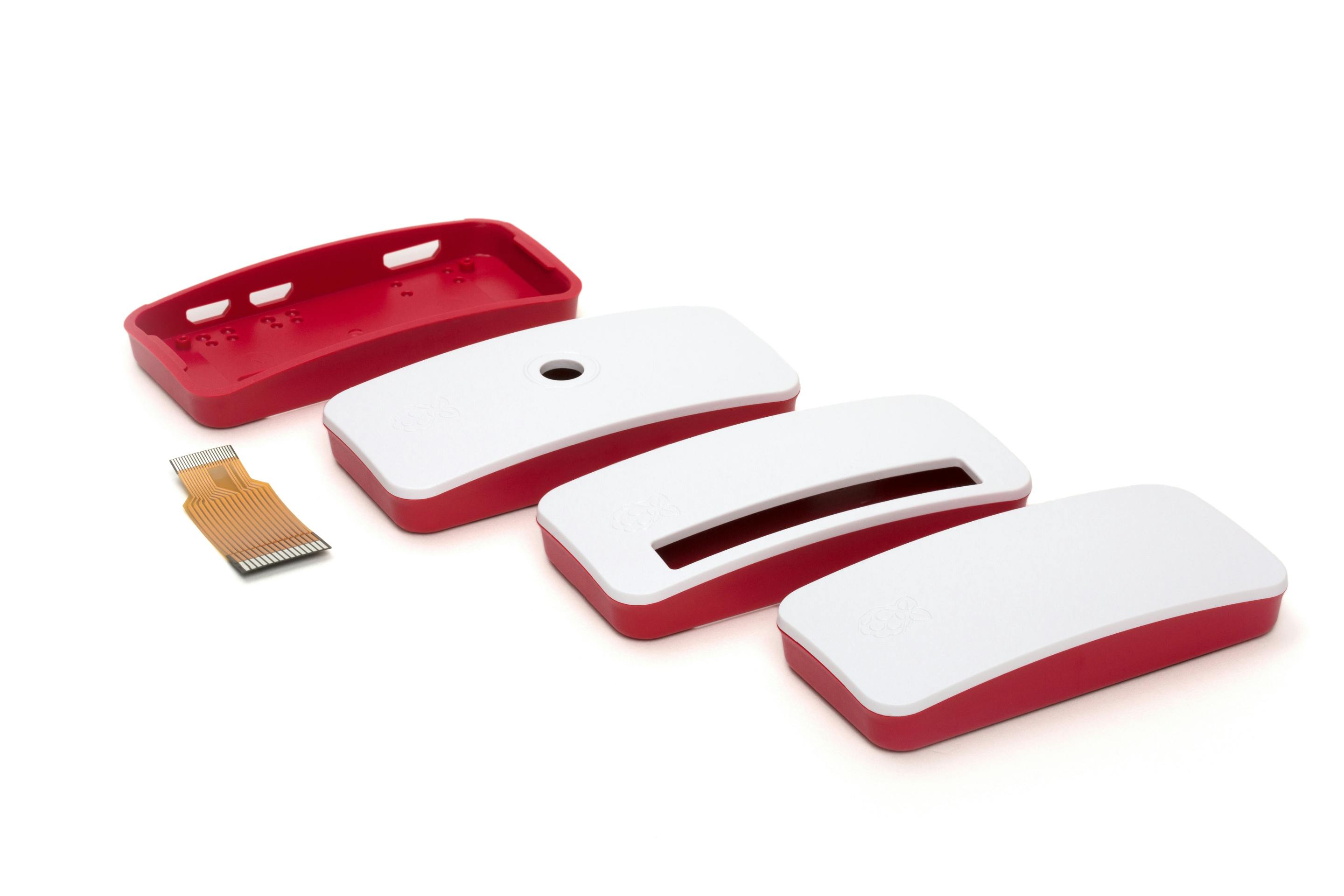 De andere kant van de flexkabel kun je nu op vergelijkbare wijze op de Pi Zero W aansluiten. Druk daarna het bordje voorzichtig in de behuizing, zodat de aansluitingen aan de zijkant (mini-hdmi en twee keer micro-usb) in de uitsparing vallen. Bij de behuizing worden drie deksels geleverd waarvan één met cameraoog. Klik hier de cameramodule in vast, maar verwijder wel eerst het stukje plastic folie dat de lens beschermt.