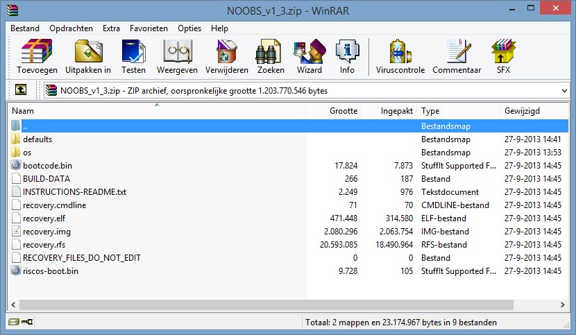 Download vanaf de website van de Raspberry Pi het bestand NOOBS (op het moment van schrijven is versie 1.8 de laatste versie, maar wij downloadden NOOBS_v1_3.zip) en pak het bestand - zo'n 1,11 GB - uit naar de net geformatteerde geheugenkaart. Verwijder vervolgens de geheugenkaart uit de kaartlezer. Doe dit vooral op de officiële manier via Uitwerpen, bijvoorbeeld door in de Verkenner met de rechter muisknop op de driveletter van de SD-kaart te klikken en daarna in het geopende contextmenu voor Uitwerpen te kiezen. Dan weet je zeker dat het goed gaat.