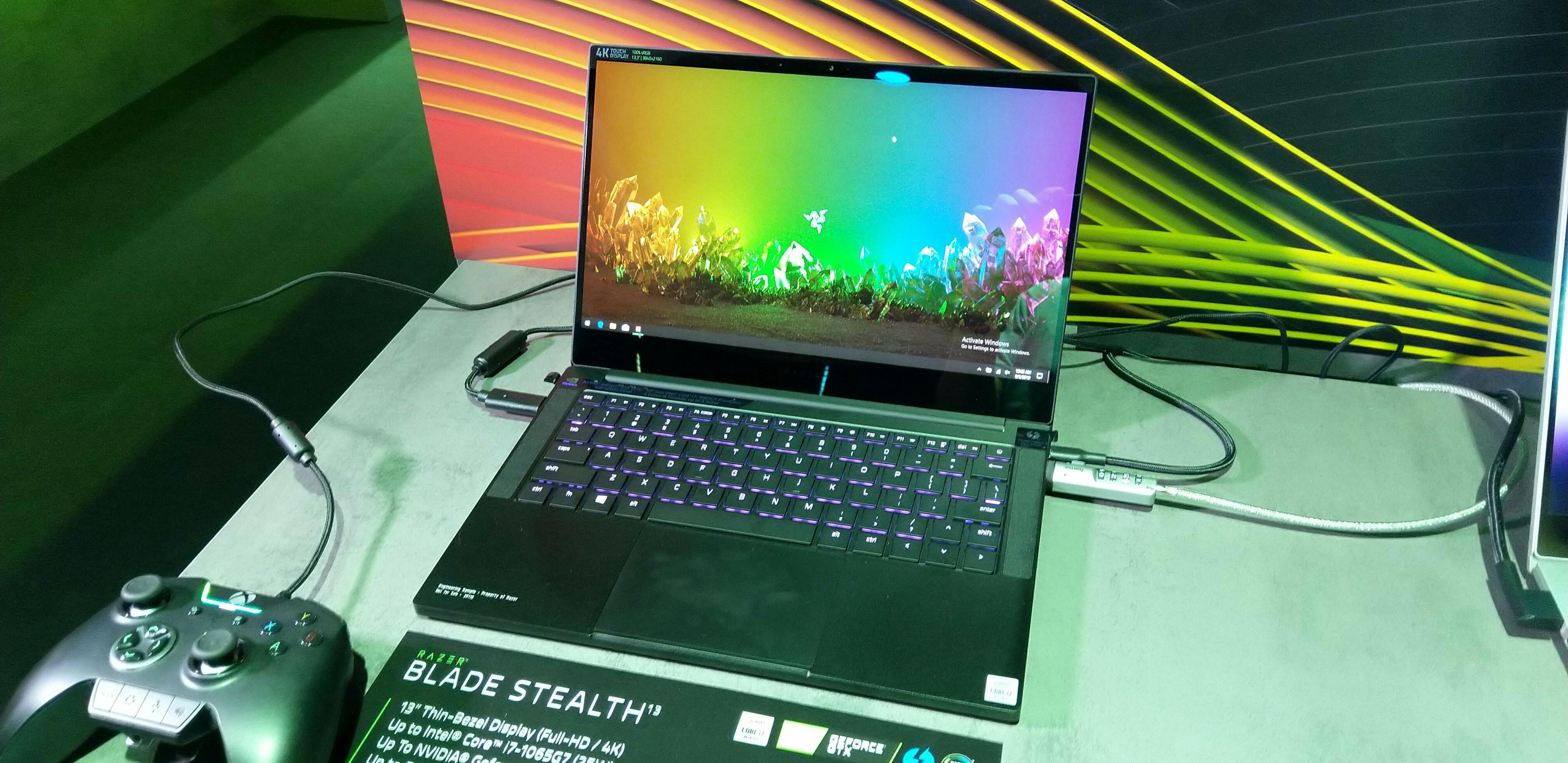 Hoe krachtig de Razer Blade Stealth 13 precies is, konden we op de beurs niet achterhalen. Wel kunnen we melden dat de aluminium behuizing erg fraai oogt en stevig aanvoelt. Voor een gaminglaptop is de Razer bovendien heerlijk rustig vormgegeven. Het in verschillende kleuren verlichte toetsenbord tikt lekker terwijl ook de touchpad goed werkt.