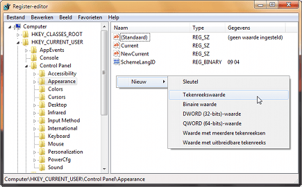 Nieuwe sleutels en registerwaarden maakt u op nagenoeg dezelfde manier als waarop u in Verkenner nieuwe mappen en bestanden aanmaakt. U opent de sleutel waarin u een nieuwe sleutel of registerwaarde wilt maken, klikt met de rechtermuisknop in het rechterdeelvenster, en kiest Nieuw, waarna u de gewenste optie kiest. Vervolgens geeft u de nieuwe sleutel of waarde de juiste naam. Een nieuwe sleutel zal in het linkerdeelvenster verschijnen, terwijl een nieuwe registerwaarde in het rechterdeelvenster terechtkomt.