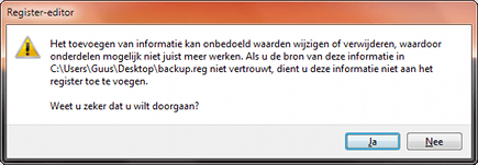 Een waarschuwing voorkomt onbedoeld importeren van een registerbestand.