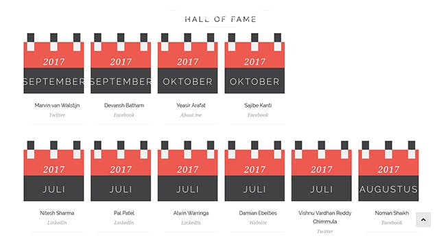 Wall of fame: Hackers gebruiken een RD-melding ook op hun cv. Kom ze tegemoet door een publieke wall of fame op te stellen met wie je heeft geholpen met welk probleem.