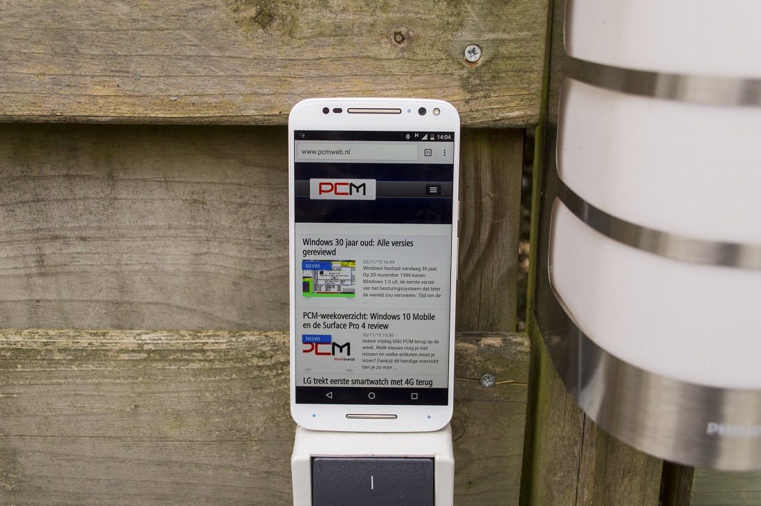 Naast een hoge resolutie kenmerkt het scherm van de Moto X Style zich tevens met een zeer hoge pixeldichtheid (520 ppi). Zelfs met je neus op het scherm ziet alles er haarscherp uit, ook in het zonlicht. Het scherm is voorzien van Gorilla Glass 3 en een waterafstotende nano-coating (IP52 gecertificeerd). Dit betekent niet dat het toestel waterdicht is zoals de Sony Xperia Z-toestellen. De Moto X Style is enkel spatwaterdicht. Water- en regendruppels of morsen beschadigen het toestel niet. Je moet de smartphone in ieder geval niet in bad laten vallen of onder de kraan houden.