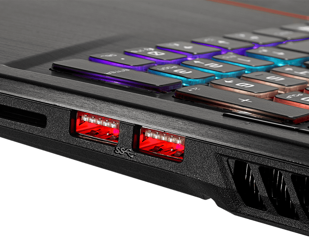 De GE63VR-7RF heeft een aantal grappige gimmicks, zoals de eerdergenoemde verlichte toetsen, maar ook lichtgevende usb-poorten horen bij die standaarduitrusting. Al dat moois kost natuurlijk ook gewoon stroom, en zijn niet voor iedereen misschien even handig of nuttig. Daarom kun je al die verlichting uitschakelen via de MSI-software. Vervelend is wel dat MSI er niet voor heeft gekozen om alle tweaking-functies, waaronder de verlichting eigenlijk ook valt, in een enkele app onder te brengen. Het uitschakelen van de usb-verlichting gaat via het eerdergenoemde Dragon Center, maar wil je de kleuren van de toetsen aanpassen of de verlichting helemaal uitschakelen, dan moet je weer een andere tool gebruiken, de PrismSync. Die tool kun je overigens ook gebruiken om de verlichting van andere apparaten aan te passen en met elkaar te synchroniseren. Zo kun je bijvoorbeeld een muis of muismat, extern toetsenbord, hoofdtelefoon met led-verlichting met elkaar laten samenwerken, wat mooie effecten oplevert. Over het toetsenbord gesproken, MSI heeft de Windows-toets op dit model alleen aan de rechterkant van het toetsenbord geplaatst. De plek waar deze toets normaal gesproken links zit, is hier de FN-toets voor het aanroepen van de extra functies. Wel kun je met het Dragon Center de Windows-toets helemaal uitschakelen, zodat je deze niet per ongeluk activeert tijdens het gamen, en je game wordt geminimaliseerd terwijl het Windows 10 startmenu wordt geopend.