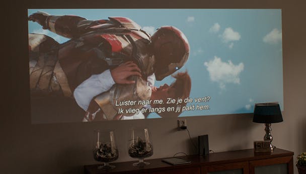 Ook films kijken is geen probleem. Ook hierbij zijn de kleuren mooi en is het beeld haarscherp. Toch merk je wel dat overdag het beeld minder is door het extra licht. Voor het optimale resultaat moet je dus een donkere kamer hebben, wat overigens bij andere beamers in deze prijsklasse niet anders is.