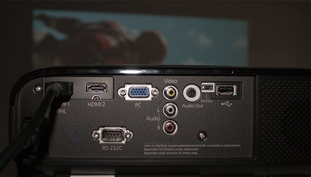 Het geluid van de ingebouwde speaker in de Epson EH-TW5200 is niet om over naar huis te schrijven. Het is een prima noodoplossing, maar niet meer dan dat. Het aansluiten van externe speakers is dus een pré. Daar tegenover staat dat je voldoende aansluitingsmogelijkheden hebt.