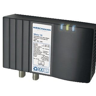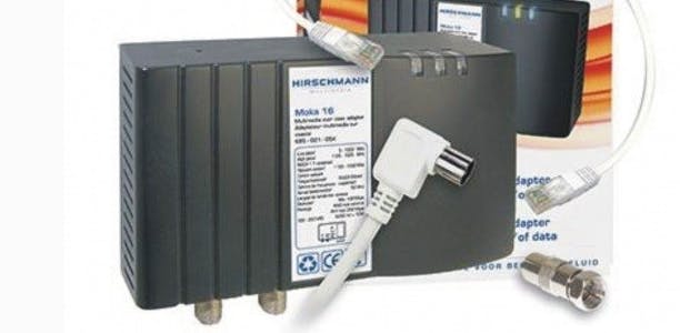 De Hirschmann Moka 16 stelt je in staat om je coaxkabel te gebruiken als een netwerkaansluiting. Hiervoor heb je net als bij powerline aan iedere kant een speciale adapter nodig. Er kunnen maximaal zestien adapters met elkaar verbonden zijn. De adapters maken gebruik van de MoCA 1.1-standaard (Multimedia over Coax Alliance). We hebben een setje van twee Moka 16-adapters getest, waarbij we één adapter in de meterkast hebben gehangen en één adapter aan de coaxaansluiting in de woonkamer.