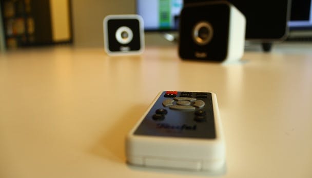 Waar de satellieten klein en compact zijn, is de actieve subwoofer groot, log en loeizwaar. Deze schuif je niet zomaar even achter een kastje of onder de bank. Voordeel is wel dat de subwoofer dezelfde strakke afwerking heeft als de speakers, dus het is absoluut geen lelijk object in je woonkamer. In de weg staan kan hij helaas wel. Tot slot levert Teufel ook nog een kleine maar handige afstandsbediening mee. Deze breekt met het strakke ontwerp van de Motiv 2-set, en voelt wat goedkoop aan.