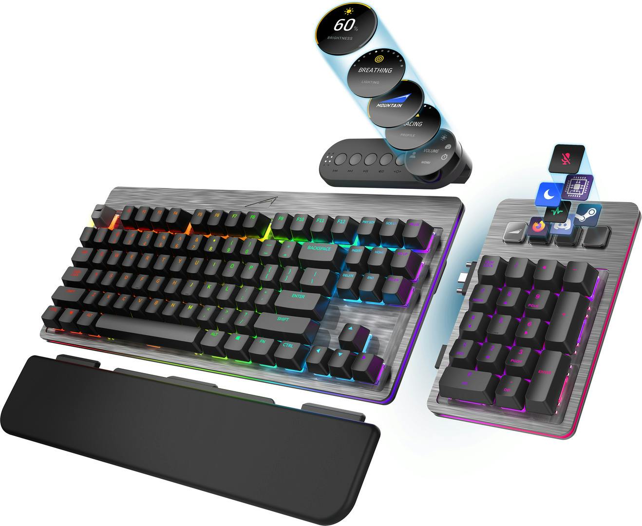 Daarnaast is er een apart numeriek toetsenbord dat je zowel aan de linker- of rechterkant van het klavier kunt vastklikken, ook via usb-c. Op dat toetsenbord zijn vier programmeerbare knoppen aanwezig, die je kunt voorzien van een functie en een eigen afbeelding. Op die manier kun je bijvoorbeeld een Chrome-logo weergeven en dat koppelen aan de browser Chrome.