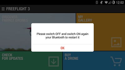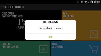 Eén van de grootste voordelen van de Parrot-drones is dat ze geen gebruik maken van speciale controllers, maar dat je de apparaten met je smartphone kunt besturen door de notoire FreeFlight-app. Parrot kiest er om onbegrijpelijke redenen niet voor die app gewoon te updaten, maar telkens nieuwe versies uit te brengen voor iedere aparte functie die het toevoegt, waardoor de Play en de App Store vol staan met verouderde apps die aangeven dat je vooral maar een andere app moet hebben. Maar de ellende van de Parrot FreeFlight 3.0 (en dus niet 1.0 of 2.4 die nog steeds online staan) begint pas zodra je het opstart.