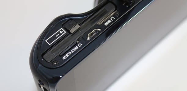 Aan de zijkant van de Samsung Galaxy Camera vind je de oplaadaansluiting (micro-usb), aan de onderkant zit de statiefaansluiting (ook handig voor als je in de auto een navigatie-app wilt gebruiken en tegelijkertijd foto’s wilt schieten van het panorama dat zich voor je uitstrekt) en het schuifvakje voor de accu. Daar vind je ook de mogelijkheid om een simkaart te plaatsen om via mobiel internet online te gaan, extra geheugen toe te voegen met microSD (standaard heeft de camera 8 gigabyte aan geheugen) en de camera aan te sluiten via een micro-hdmi kabel.