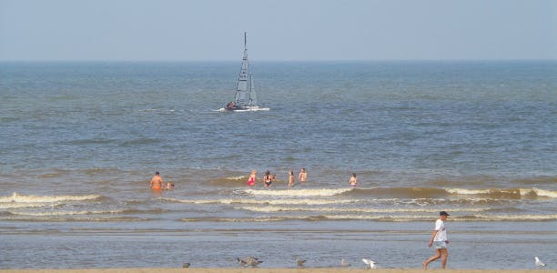 Vanaf het strand zoom je moeiteloos in op bootjes in de verte.